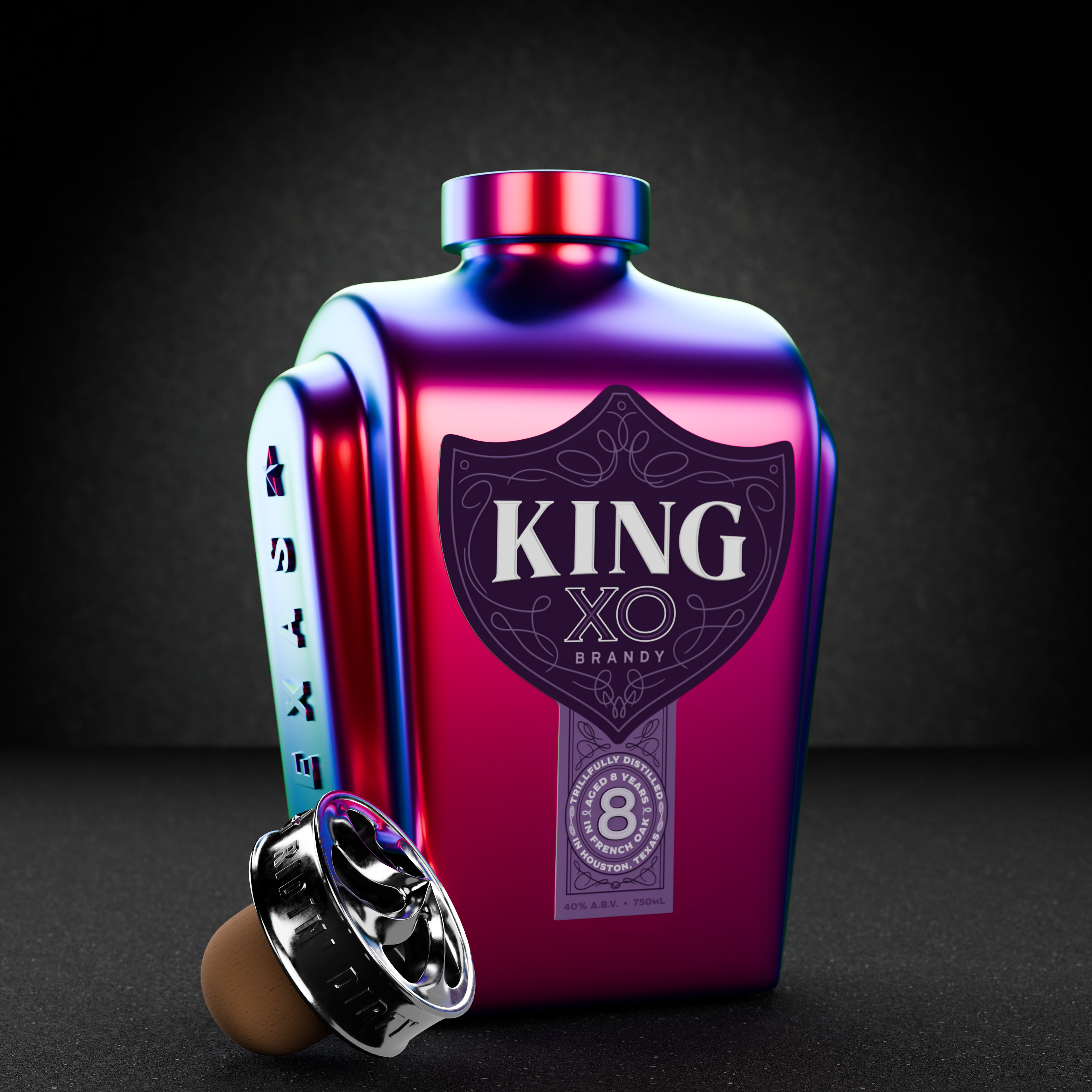 This conceptual Brandy is built for Bun B of the legendary rap duo, UGK. The design draws inspiration from car culture of the new millennium ( Spinning rims, chameleon paint, pinstriping) and applies them to every element of the package from the structure to the enclosure, label design and glassware.